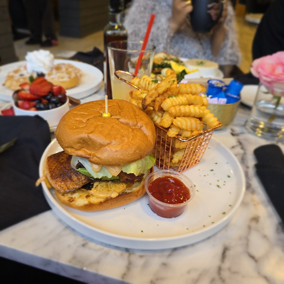 If you're looking for a lighter option, the Salmon BLT is a must-try. This unique take on the traditional BLT features perfectly seared salmon, paired with crispy bacon, fresh greens, and ripe tomatoes, all nestled between toasted bread. It's a fresh and flavorful choice for those who love a bit of seafood with their comfort food.